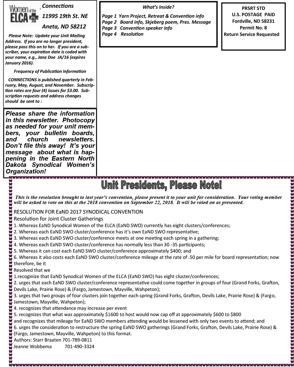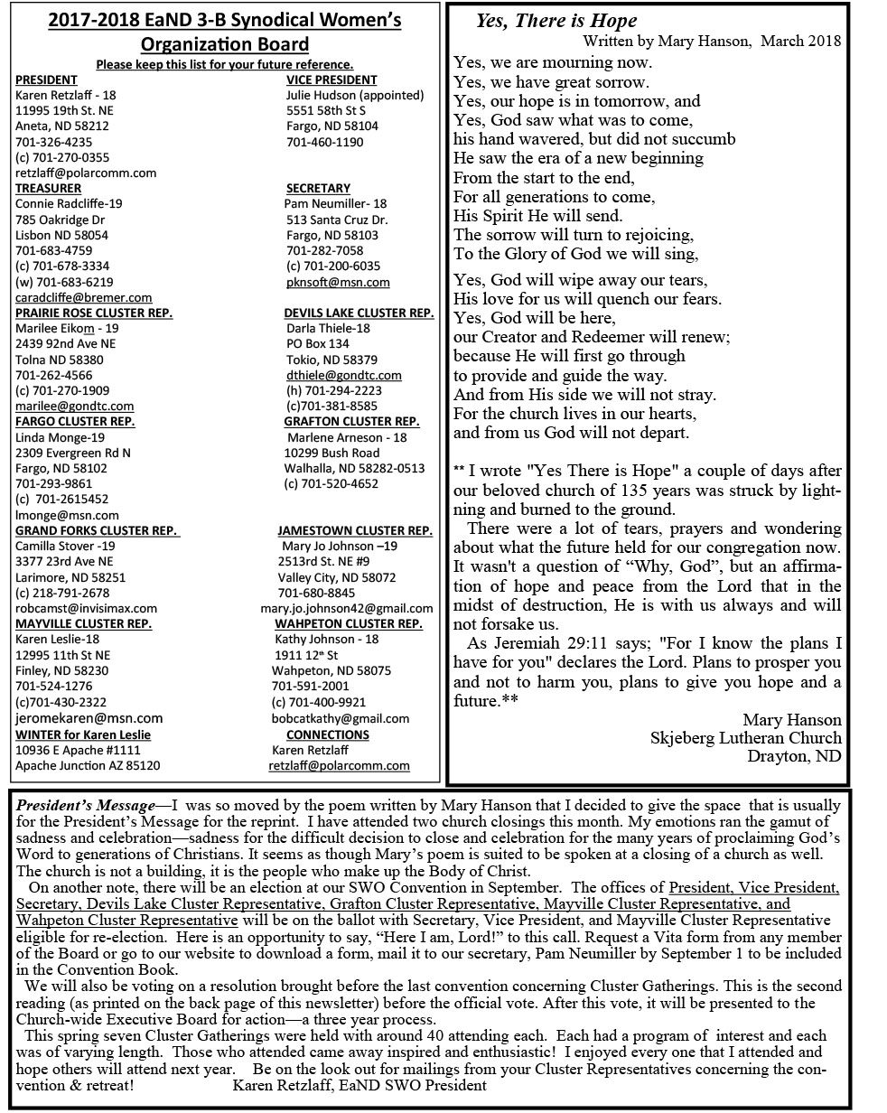 Welcome to Eastern North Dakota Synodical Women’s Organization 3B Women of the Evangelical Lutheran Church in America