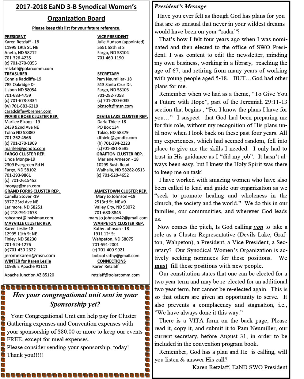 Welcome to Eastern North Dakota Synodical Women’s Organization 3B Women of the Evangelical Lutheran Church in America