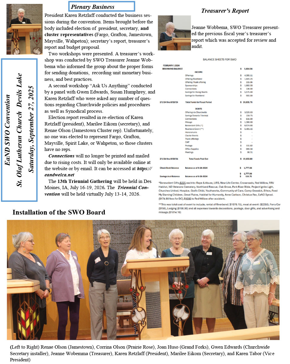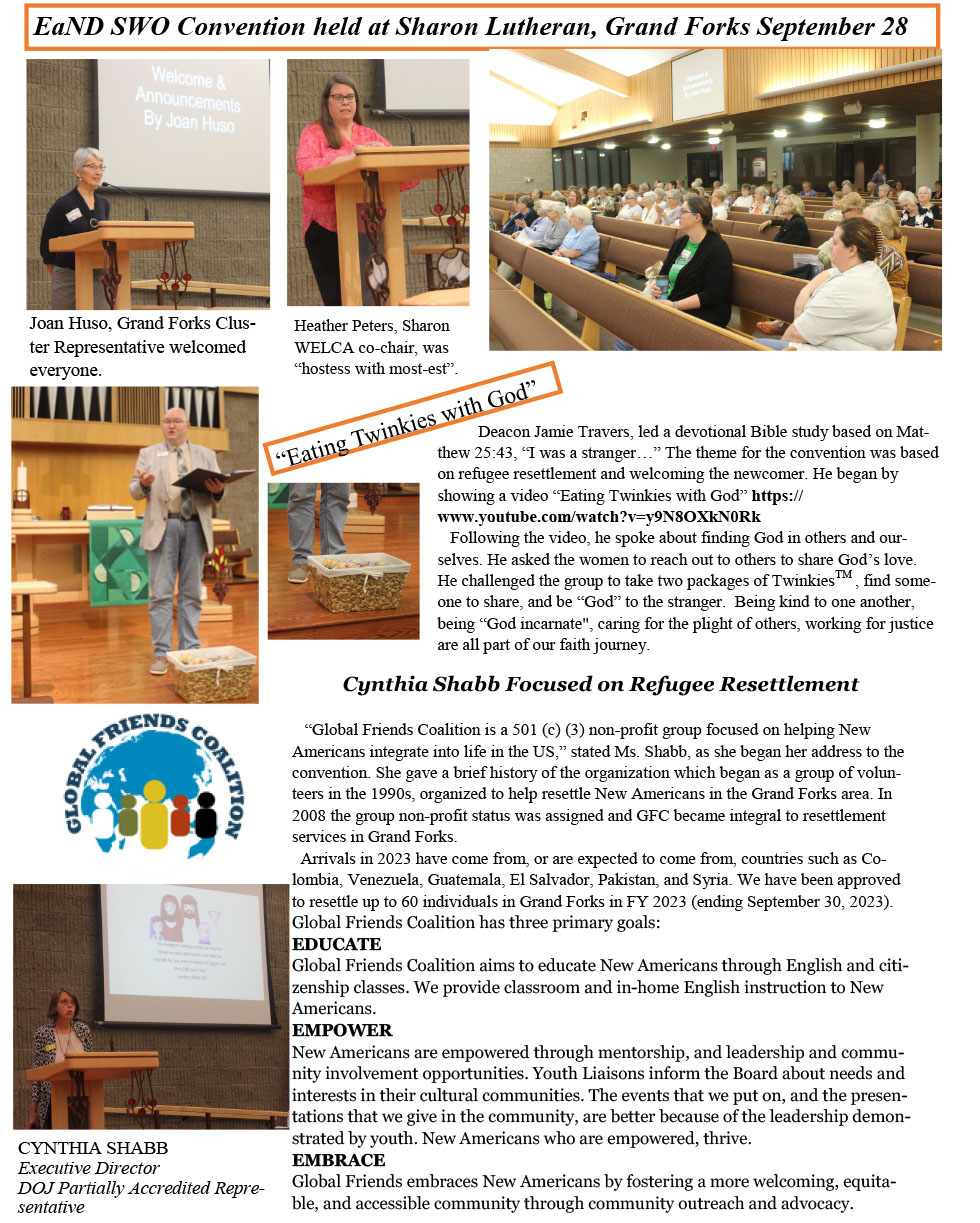Welcome to Eastern North Dakota Synodical Women’s Organization 3B Women of the Evangelical Lutheran Church in America